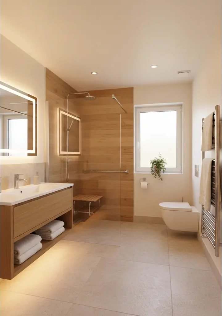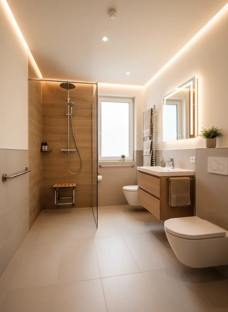 Schon kleine Anpassungen können den Unterschied machen. Bodengleiche Duschen, ausreichend Bewegungsraum und gut erreichbare Elemente erleichtern die tägliche Nutzung und sorgen für mehr Sicherheit im Bad.